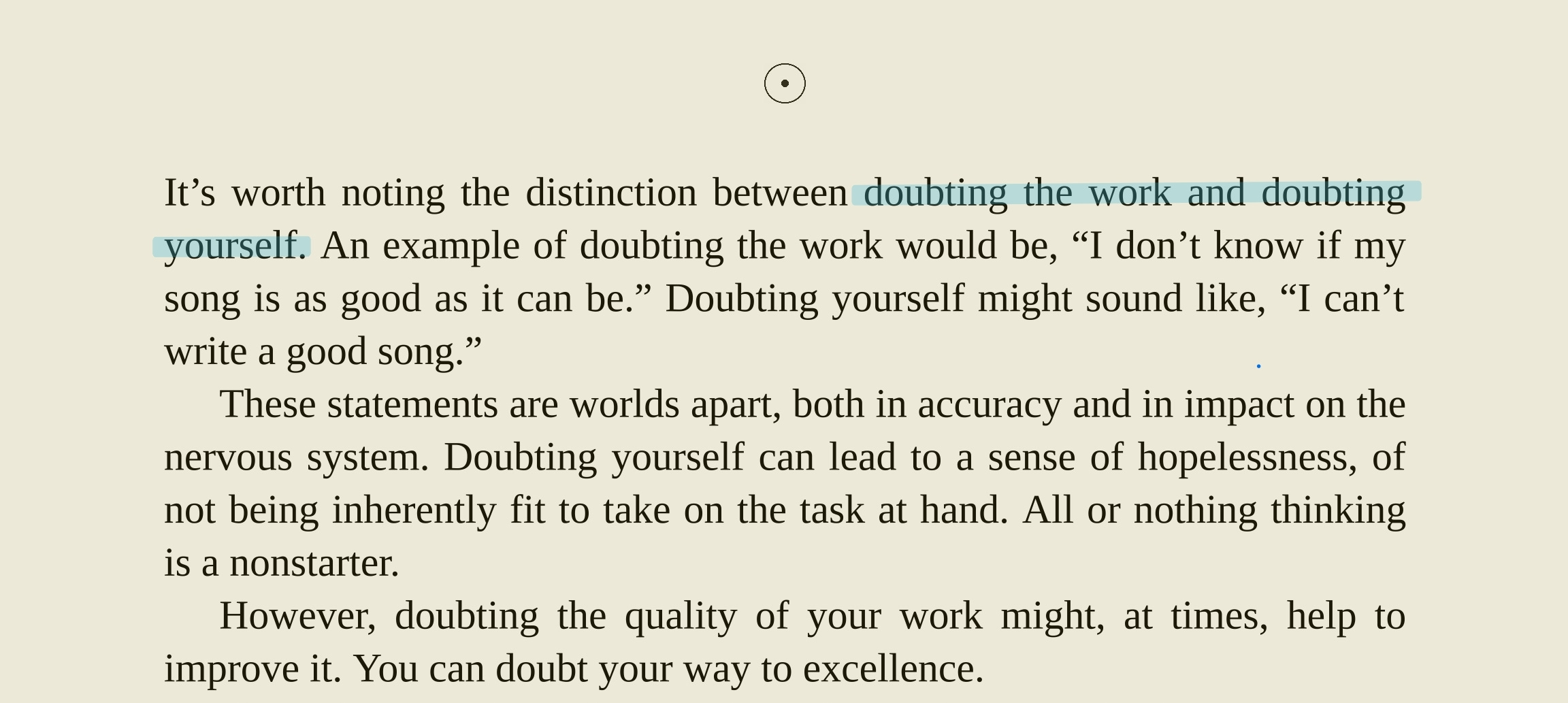 It is a skill to look past all that and take his point, which is to enjoy and love the process of creativity, because the result won’t be as good without it. You’re not a bad reader for not immediately having this skill, but developing it is well worth it.